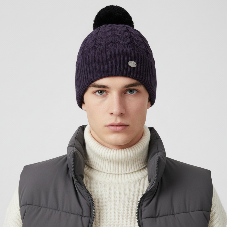 Add a lively pop of color to your winter style with the Pompom Beanie. Crafted in a rich, eye-catching Purple, it features a soft knit construction and a cheerful pompom that brings personality to any cold-weather outfit. Made from high-quality acrylic yarn, this beanie offers cozy warmth and all-day comfort—perfect for everything from snowy strolls to coffee dates.