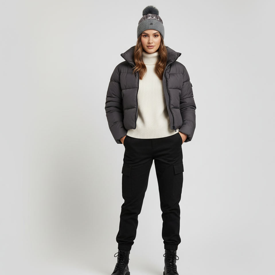 Elevate your cold-weather style with the Puffer Pompom Gray Beanie—a playful yet chic essential for winter. Its soft knit construction and fluffy pompom detail bring a touch of personality, while the versatile gray shade makes it easy to pair with any outfit. Designed with high-quality acrylic yarn, this beanie offers lasting warmth, a cozy fit, and a stylish edge that transitions effortlessly from snowy adventures to city strolls.