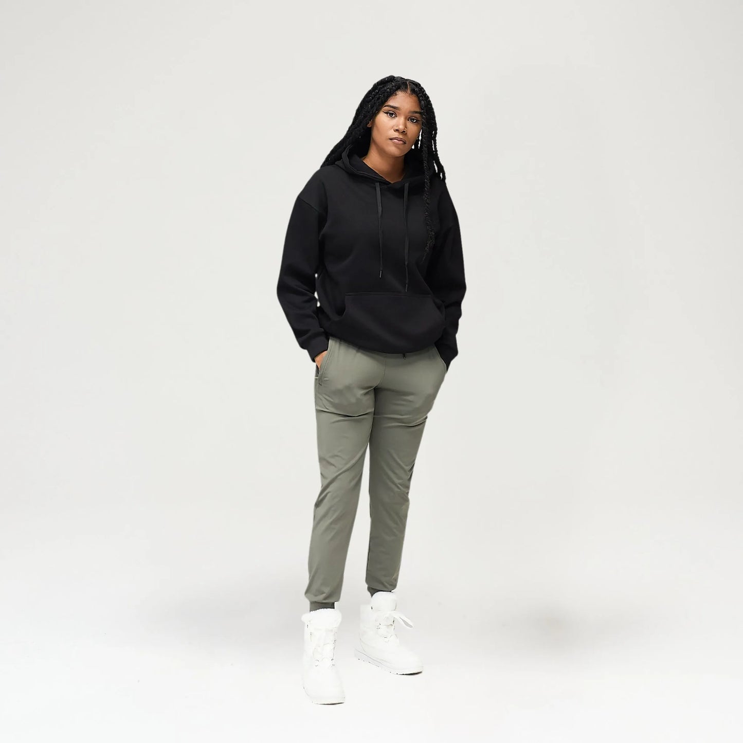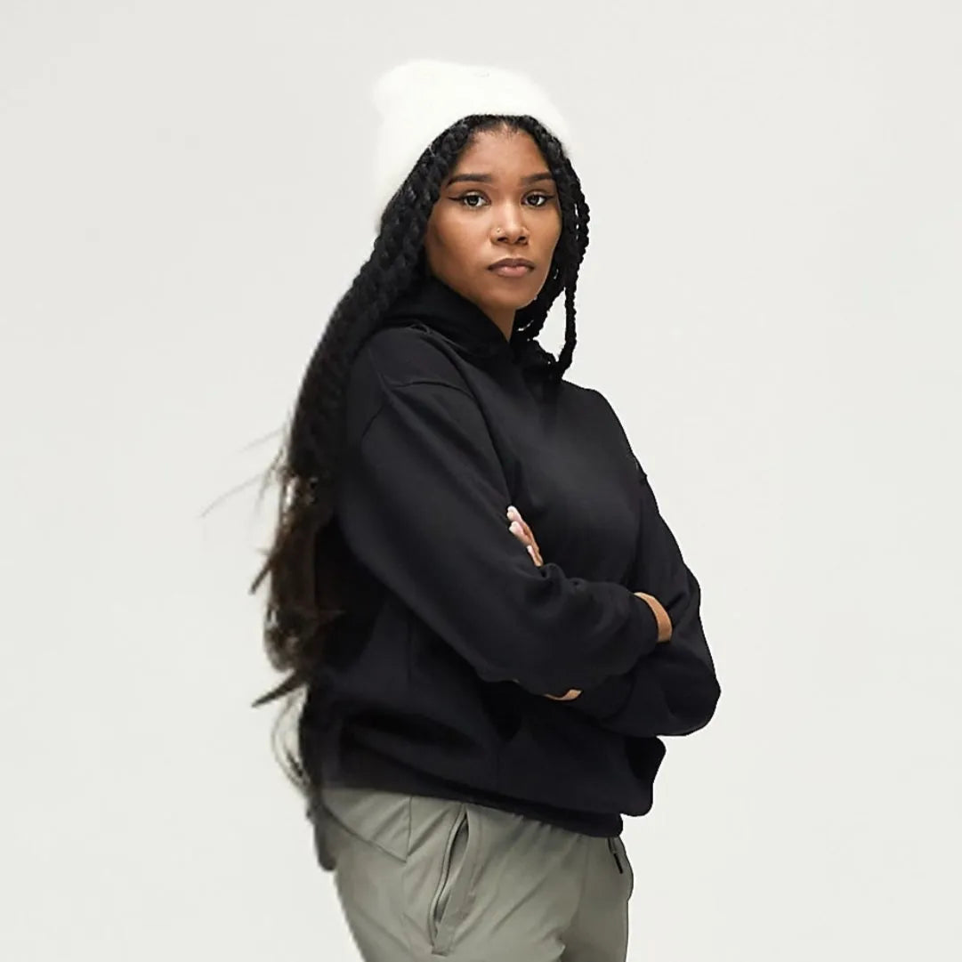Its timeless black color makes it endlessly versatile—easy to pair with anything in your wardrobe, from casual streetwear to layered winter looks. Built to last, this hoodie combines sustainability, durability, and style, making it a staple you’ll reach for season after season.