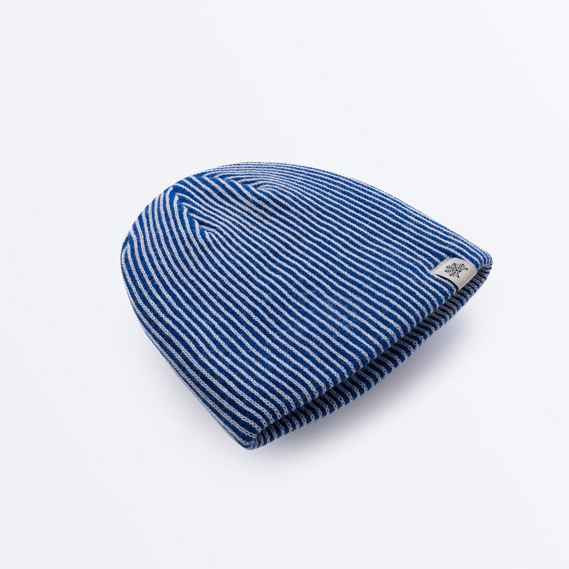 Snowy Stripes Blue Beanie – Winter Warmth with a Pop of Color