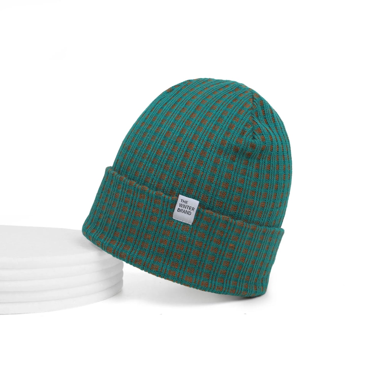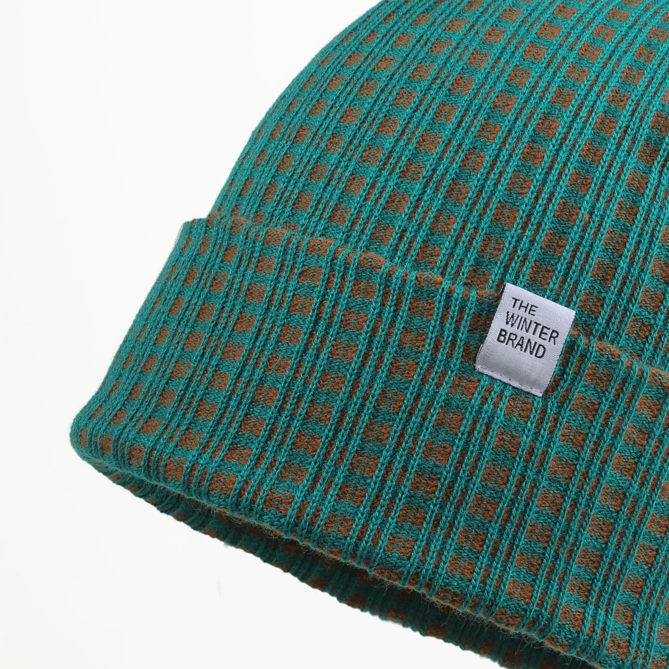 Nordic Green & Brown Checkered Beanie – Cozy Nordic Style